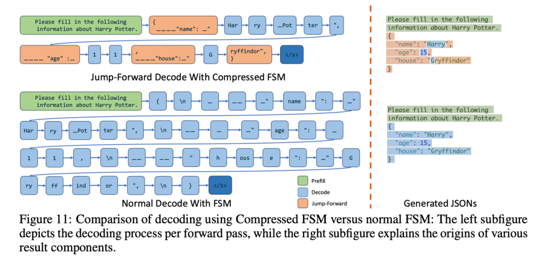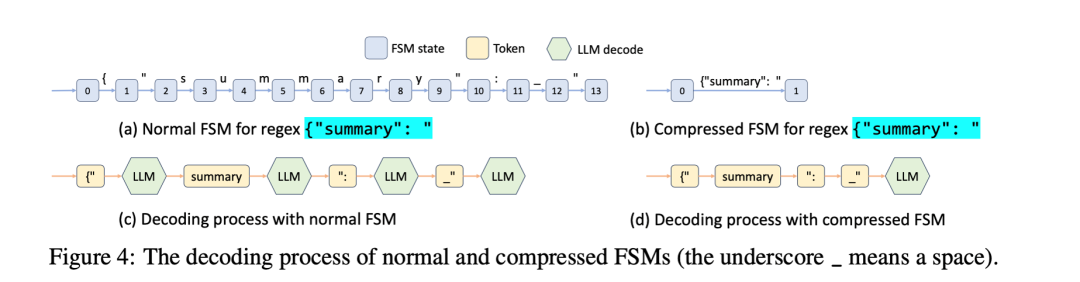 针对约束解码的情况, 通过压缩的状态机减少模型推理生成的token, 实现加速效果。