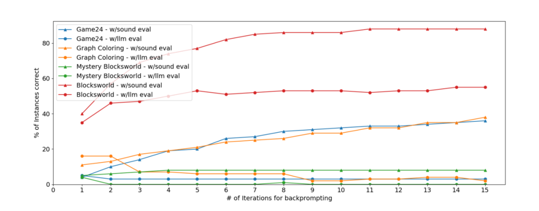 [6]这篇工作指出,之前的很多self-correct的工作,指标的提升并不来自于自我纠正的生成范式,而是在检查验证先前的答案,提供反馈以纠正错误的时候,提供的反馈包含了更多的信息,因此提升了模型能力。 这个工作在三个较难的任务上实现了几种不同的范式,包括直接推理,用LLM进行检查验证,用一个可靠的经典方法检查验证;以及不同类型的反馈结果,包括只有一个正误,部分错误,全部的错误等等,组合而成多种推理范式,实验发现一个可靠的经典方法生成反馈能最大程度上地提高模型的表现, 相比而言用LLM生成的反馈对模型表现的提升有限。