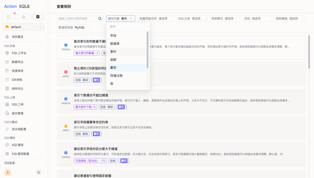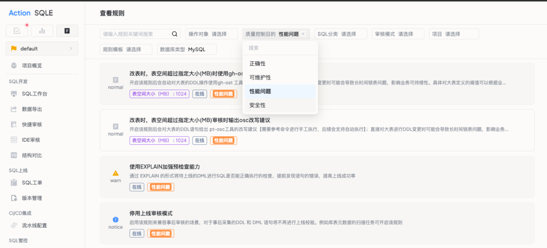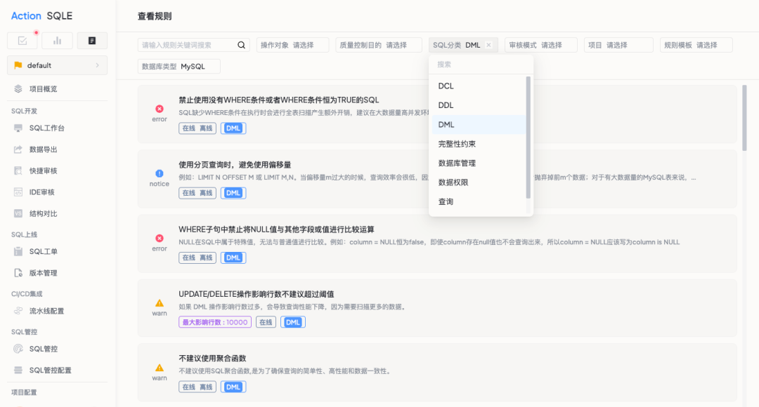 SQL 审核规则多,四维筛选更轻松
