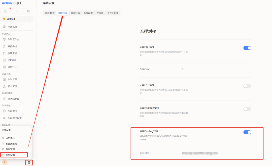 管理员只需在系统配置中开启 Coding 对接,即可实现两个平台的无缝连接。