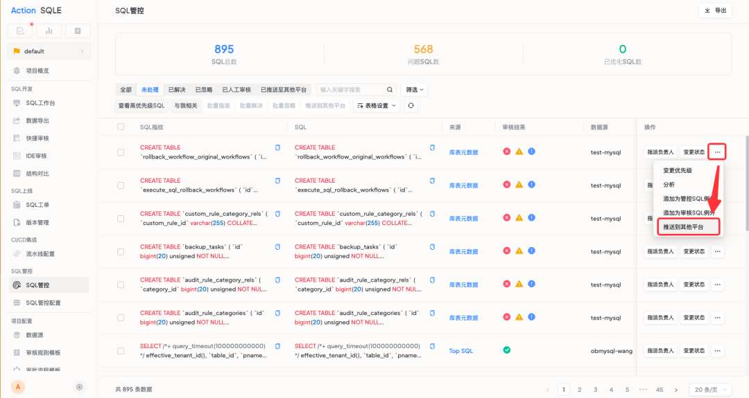 运维人员可一键推送问题 SQL,无需在不同平台进行重复录入