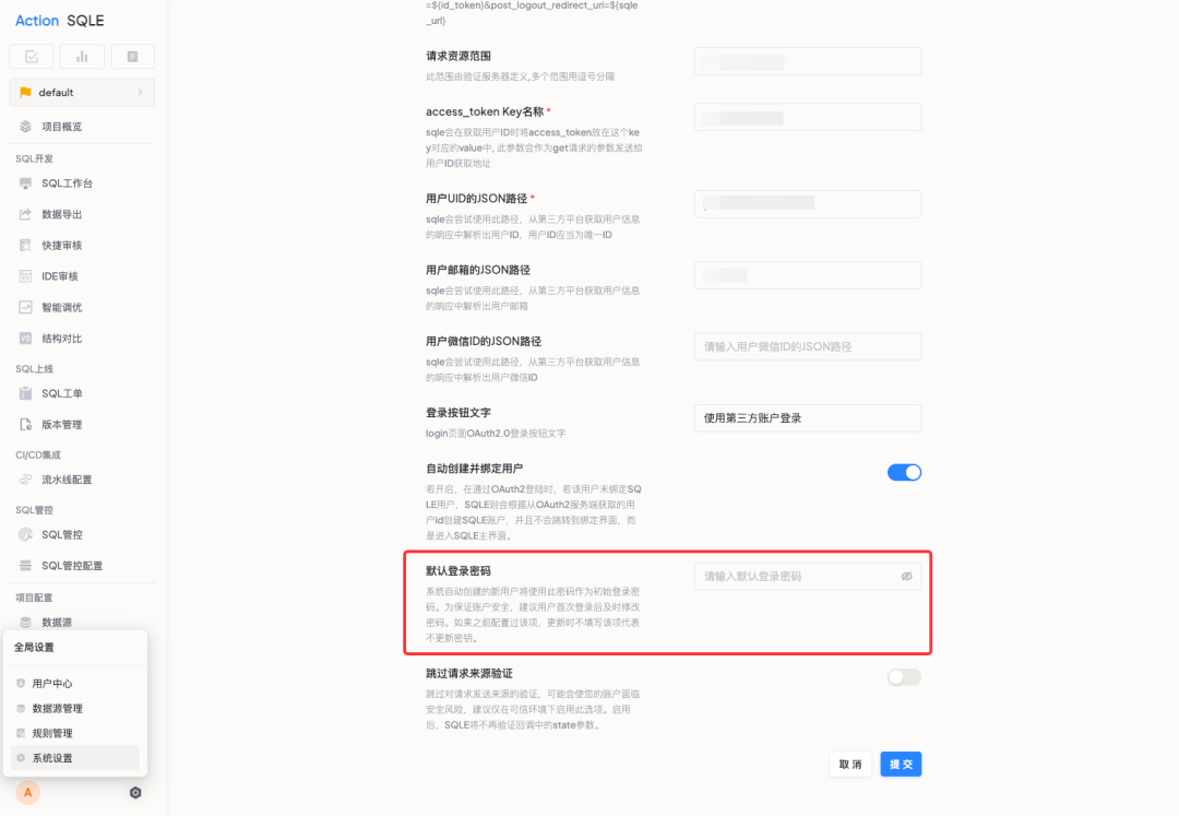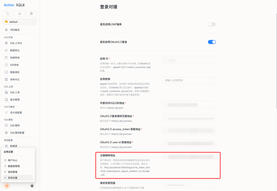 ✓ 一键退出:从 SQLE 退出时,关联的第三方平台也会同步退出