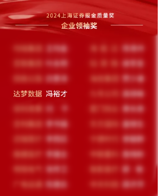 由上海证券报与中国证券网主办的“上证·滴水湖上市公司高质量发展大会”暨“上证·金质量”颁奖仪式在上海圆满举办。武汉达梦数据库股份有限公司董事长冯裕才,凭借达梦数据在国产数据库领域的突出贡献及上市后的优异表现,荣获“2024上海证券报金质量奖-企业领袖奖”。