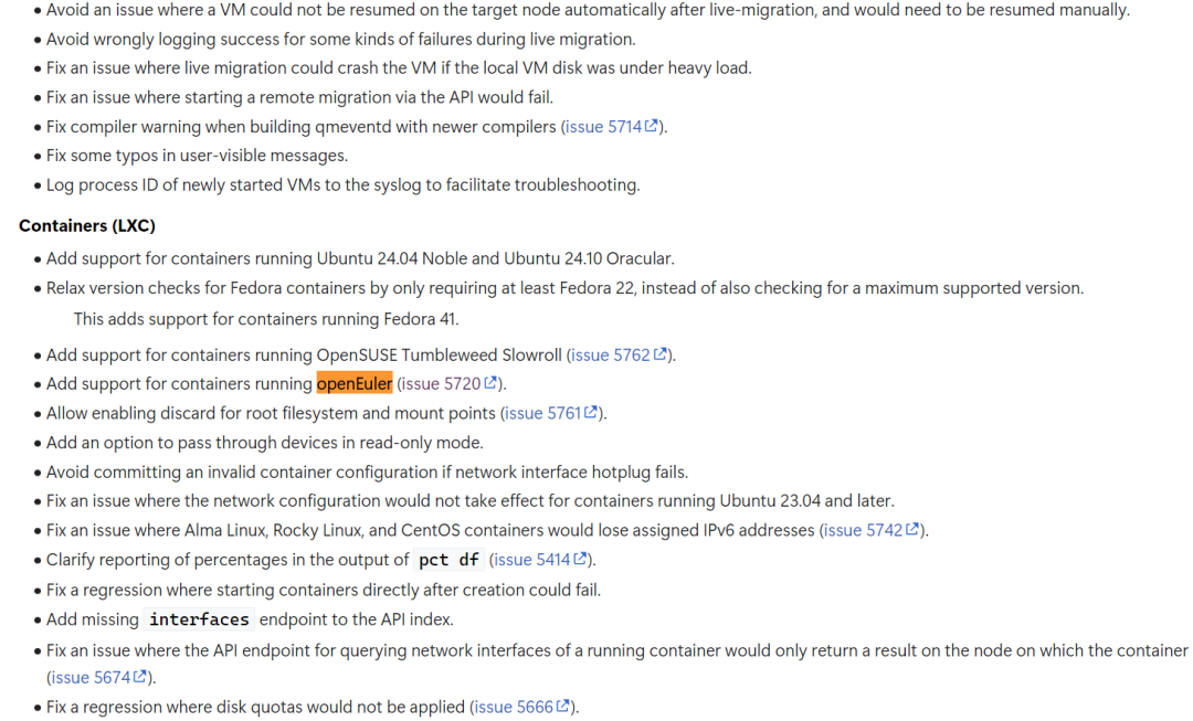 在Proxmox VE最新的8.3版本上已经集成了openEuler的容器模板,可以在Proxmox VE中直接启动openEuler 24.09版本的容器。