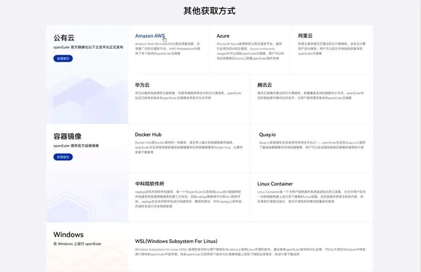 为了提升开发者获取openEuler操作系统的便捷性,我们对下载中心进行优化,整合了openEuler多种获取方式,增加相关资源、支持与服务等功能楼层,丰富下载中心配套服务,让开发者能够快速、轻松地访问和下载所需的系统版本:https://openeuler.cn/zh/download