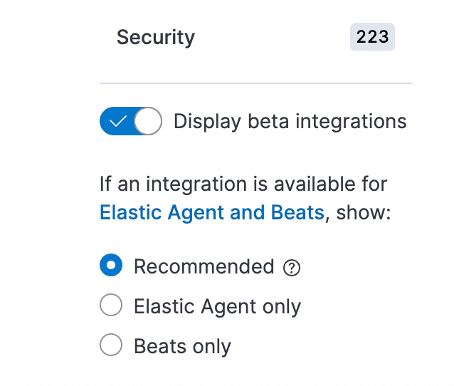 注意:由于该集成处于 Beta 发布阶段,请在 Elastic 堆栈的管理面板的浏览集成部分启用 显示 Beta 集成。