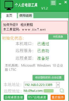 小编想问您一个问题,您知道云电脑工具可以做什么吗?小编就列举几个告诉您,使用“个人云电脑工具”您就可以知道,该电脑的远程连接地址,并且可以设置、修改密码,保护电脑和个人的隐私。知道远程地址之后,您就可以远程连接云电脑,在云电脑中进行日常的文件管理、编辑、娱乐、游戏等需求;您可以更新云电脑内的组件,查看云电脑的基础信息、配置信息等。“个人云电脑工具”的出现让小编如沐春风,感觉工作轻松了不少。接下来我来给大家介绍“个人云电脑工具”如何使用。
