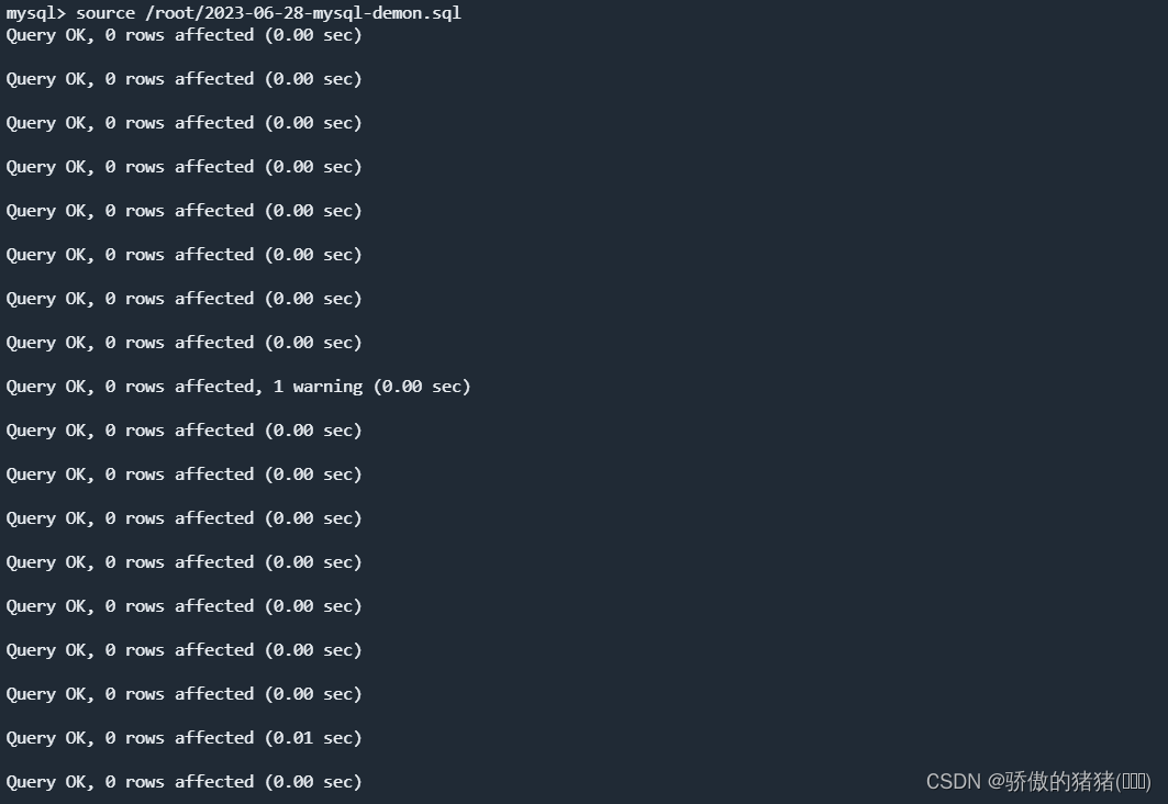 mysql> source /bk/2023-06-27-mysql-all.sql; #恢复数据库