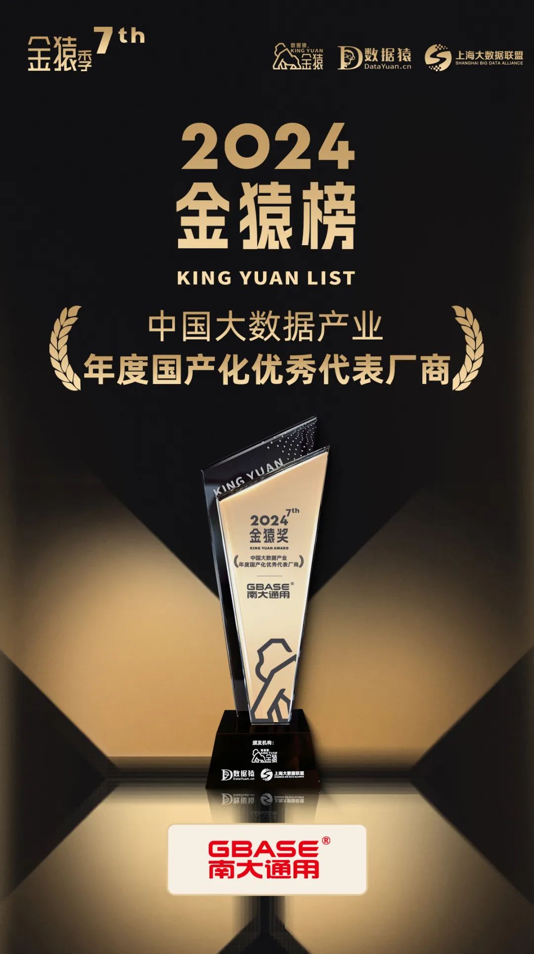 日前,以“释放×数效应·共创智+未来”为主题的2024第七届金猿&魔方论坛——大数据产业发展论坛暨数据要素趋势论坛在上海成功召开。大会重磅发布“金猿奖”系列榜单,GBASE南大通用入选“中国大数据产业年度国产化优秀代表厂商”,国产化建设成果再获行业认可。