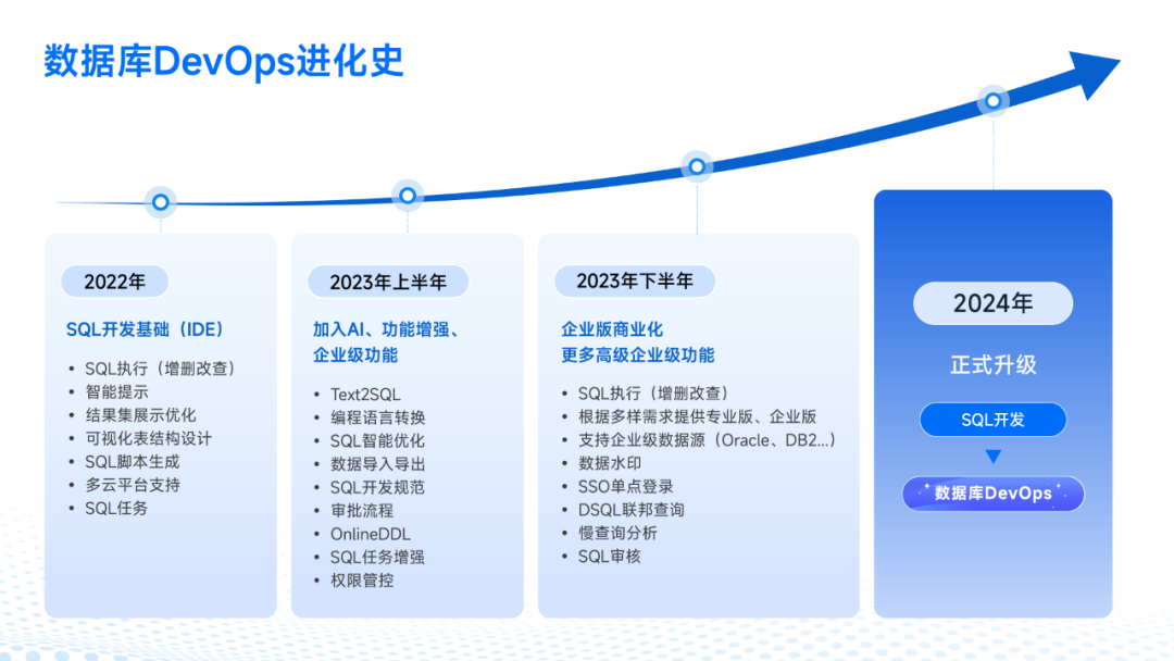 SQL 开发功能全面升级,打造企业级数据库 DevOps 解决方案,让 DBA 与研发协同效率提升 5 倍,发布双因子认证、敏感数据识别、数字水印等安全能力,引领企业数据库安全高效管理的发展和最佳实践;