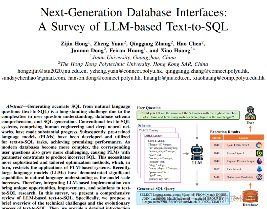 【PolyU、暨大】下一代数据库接口:基于大语言模型的文本到 SQL 综述