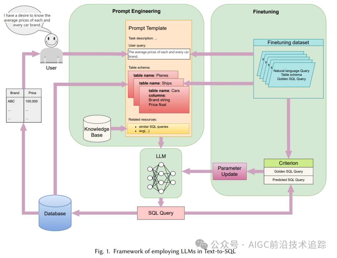 这篇论文对大型语言模型(LLMs)在文本到 SQL 任务中的应用进行了全面回顾。在这项综述中,首先概述了大型语言模型以及基于大型语言模型的文本到 SQL 任务,并解释了文本到 SQL 生态系统转向大型语言模型的关键原因。在深入探讨该任务的方法之前,提供了总体基准和评估指标,以帮助理解文本到 SQL 的背景。然后,在分类中对基于大型语言模型的文本到 SQL 的两种主要方法(提示工程和微调)进行了全面研究。还比较了不同类型的大型语言模型,并分析了大型语言模型在文本到 SQL 中的趋势。最后,讨论了文本到 SQL 任务的错误分布、实际使用中的一些当前挑战以及基于大型语言模型的文本到 SQL 的未来方向。
