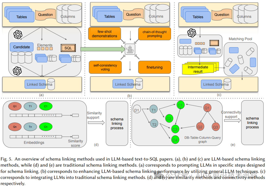 我们总结了基于语言模型的 NL2SQL 解决方案的关键模块。