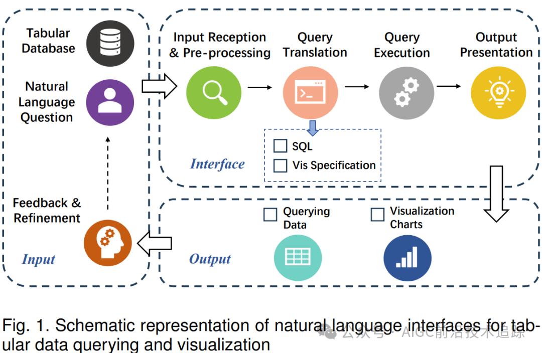 这是一篇关于自然语言在表格数据查询和可视化方面的综述。该综述全面概述如何通过自然语言实现表格数据查询和可视化,使用户能够使用自然语言查询与数据进行交互。介绍了可视化背后的基本概念和技术,特别强调了语义解析这一关键技术,它有助于将自然语言转换为 SQL 查询并实现数据可视化。然后深入探讨了 Text-to-SQL 和 Text-to-Vis 问题在数据集、方法、指标和系统设计方面的最新进展,包括深入研究大型语言模型的影响,突出其优势、局限性和未来改进的潜力。通过该综述,旨在为对在大型语言模型时代通过自然语言对数据查询和可视化感兴趣的研究人员和从业者提供路线图。