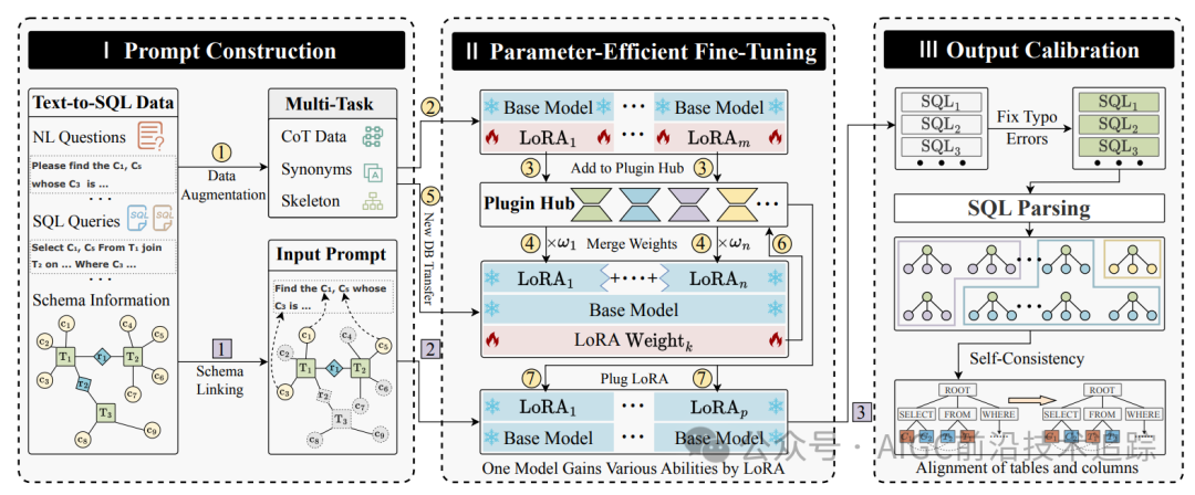 文提出了一种用于自然语言到 SQL 转换的多生成器集成框架 ——XiYan-SQL,旨在应对大型语言模型在 NL2SQL 任务中的挑战。该框架融合提示工程与监督微调(SFT)方法,利用 SFT 的可控性与上下文学习(ICL)潜力提升 SQL 查询质量与多样性。引入的 M-Schema 半结构化模式表示法增强数据库理解,其在多模型实验中表现优于传统模式。在模式链接环节精准筛选数据元素;候选生成阶段,微调 SQL 发生器经两阶段训练定制模型,ICL SQL 发生器依骨架相似选例,SQL 精炼器纠错优化;候选选择模块突破传统自一致性局限,训练模型精准抉择。多数据集实验验证 XiYan-SQL 优势,在 Spider、SQL-Eval、NL2GQL 达领先准确率,消融研究证实各组件关键作用,为 NL2SQL 任务开辟新径、引领发展。