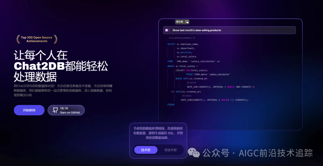 本文是一份实用指南,涵盖广泛的基础教程,为大家总结了 NL2SQL 相关的应用程序。手把手教你学习最前沿的 NL2SQL 知识。
