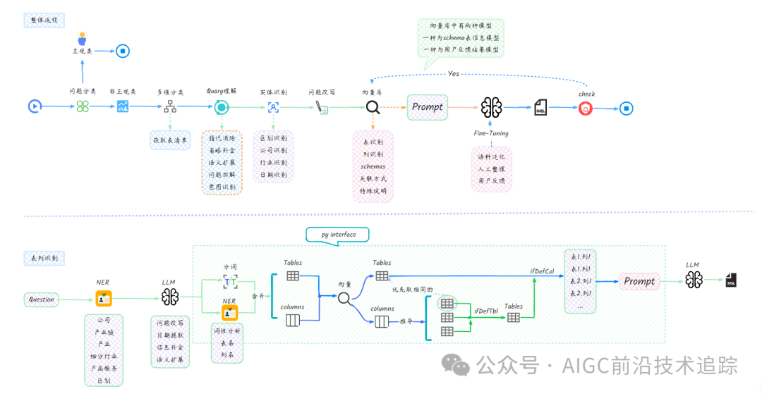2024年是AI高速发展的一年,AIGC和AGI技术可谓是百花齐放,最近一年我持续深耕NL2SQL领域,整体发现,无论是从高校还是到大厂,无论是从理论实践还是相关产品的发展,大家的思路已经逐渐统一,基本思路是小模型+RAG系统+LLM+SFT,下面是架构图:
