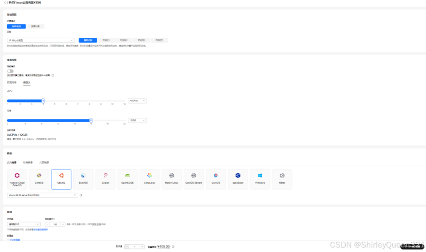 首先,进入官网购买 Flexus 云服务器 X 实例,点击这里购买,点击购买界面如下所示。