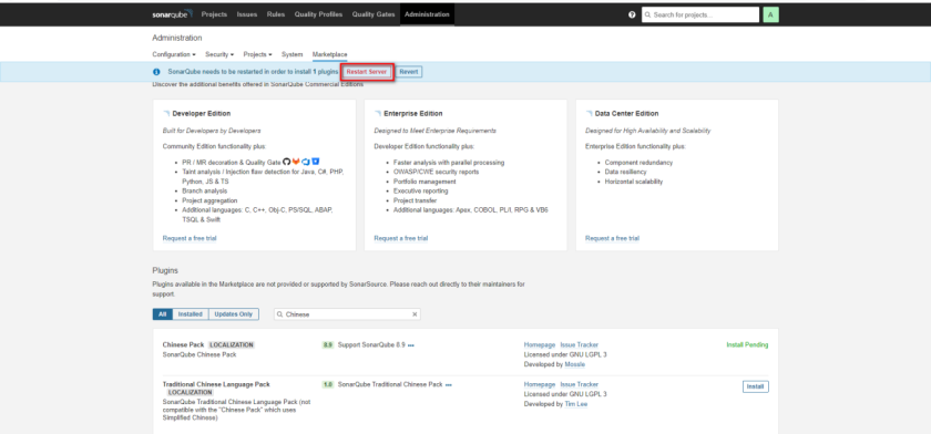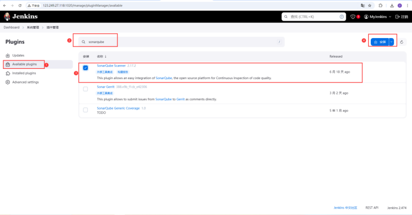 Jenkins 继承 Sonar Qube 实现代码扫描需要先下载整合插件