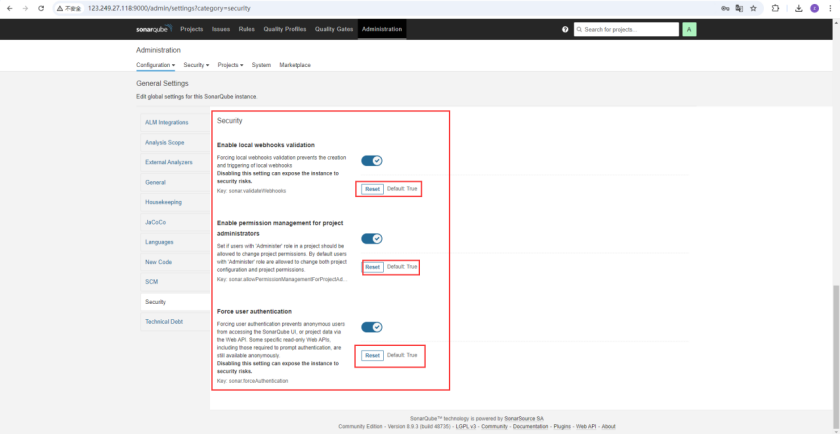开启 Sonar Qube 权限验证