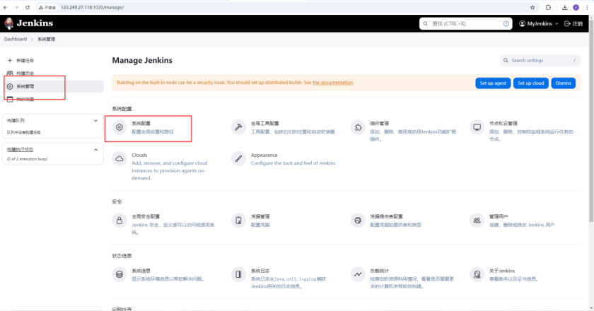 我们直接在/Jenkins/data 目录进行安装,因为我们将主机的/jenkins/data 目录挂在给了容器的/var/jenkins_home/目录