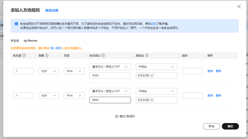 放行安全组 9000,5432