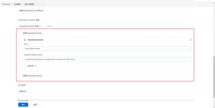 将 Sonar-scaner 添加到 Jenkins 数据卷中并配置全局配置
