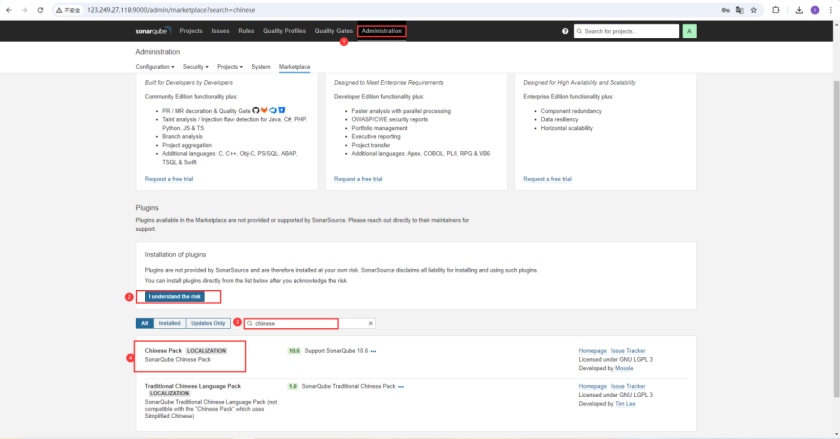 并且这里会安装 Sonar Qube 的长期支持版本8.9