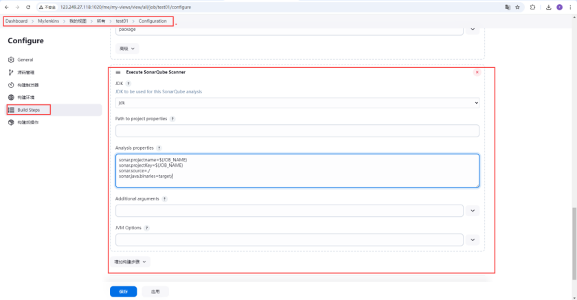 配置任务的 Sonar-scanner