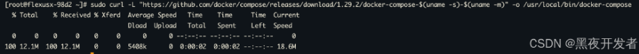 从 GitHub 仓库下载 Docker Compose 的最新版本。例如,使用下面的命令下载最新版本(版本号请自行替换为最新版本):