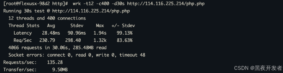 wrk -t12 -c400 -d30s http://114.116.225.214/php.php