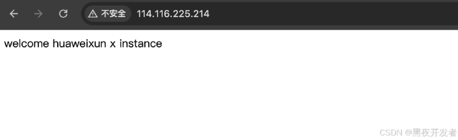 先在目录/var/web/http 下面创建一个 index.html 放入下面的内容后保存。welcome huaweixun x instance 然后访问一下机器的 ip 看看什么反应。
