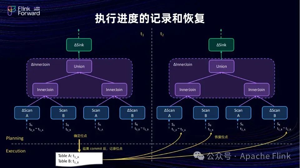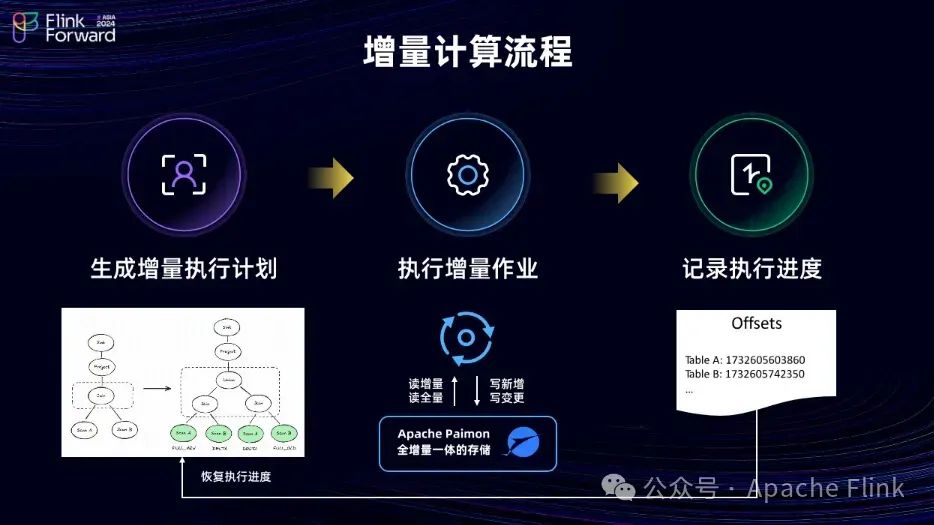 最后是执行进度的记录和恢复。为了保证增量计算能够无缝衔接地运行,需要记录和恢复之前的执行进度。这一过程大致可以分为三个部分。
