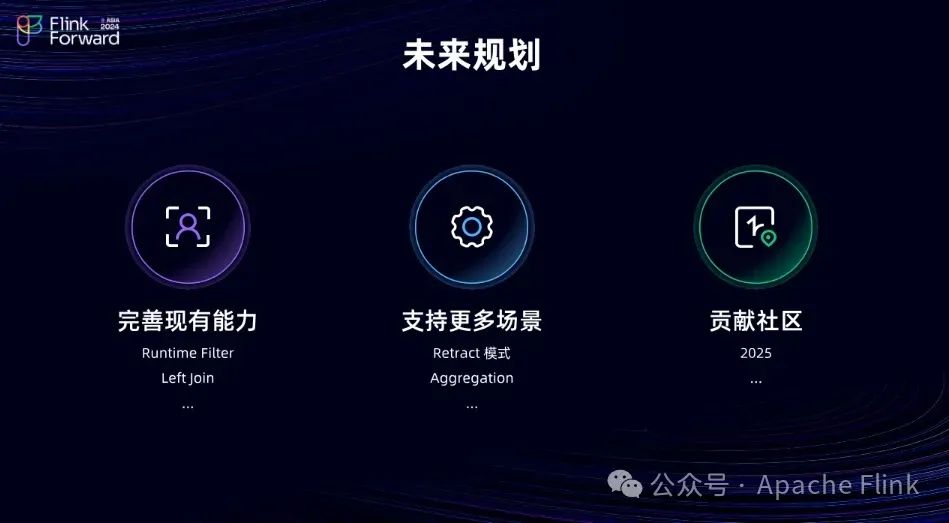 最后,我们正在整理当前的设计,打算形成 FLIP,逐步将这些能力,包括增量计算和 Runtime Filter 的相关能力推回社区。