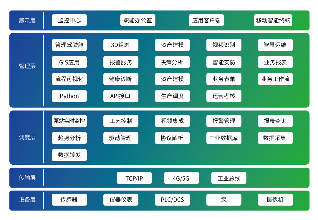 系统以物联网为基础,于泵站关键处部署各类传感器及智能设备,全方位采集设备、工艺、环境及能耗数据,搭建起泵站运行的感知网络。通过稳定通信网络,数据实时传输至处理中心,经大数据分析与人工智能算法深度挖掘处理,实现泵站的自动化、精细化管理,提高运行效率,降低成本,保障供排水安全稳定。