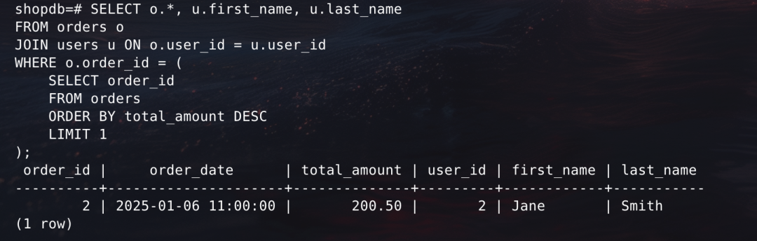 接下来我们可以增加一点难度:查询金额最高的订单信息。在数据库中有两张表 users
