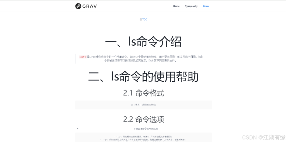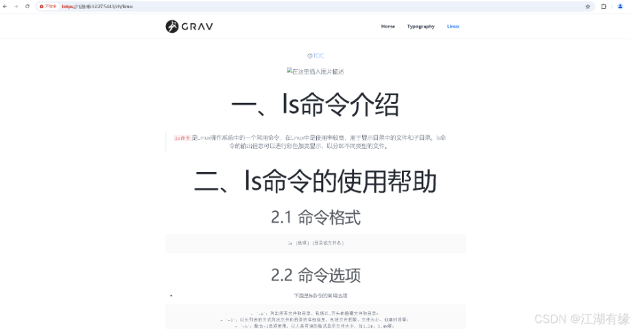 通过浏览器访问 http://你的云服务器 IP:5220/zh,可以看到 Grav 的前台页面已成功添加了 Linux 页面。