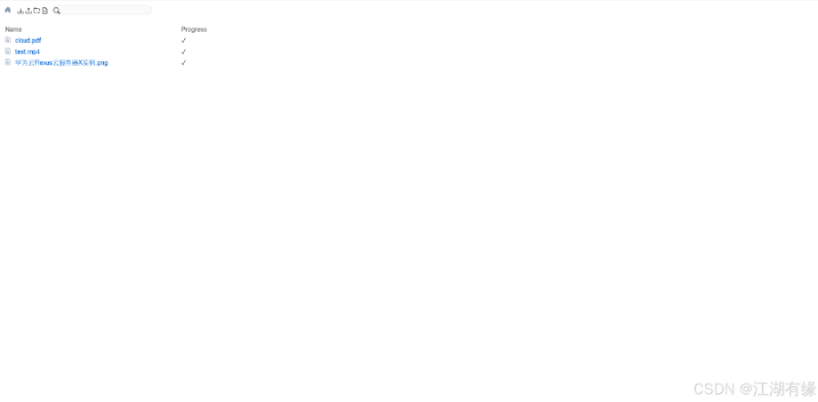 点击左上角的上传图标,将本地需要上传的文件上传即可。我们分别上传图片、视频、pdf 文件后,进行在线浏览测试。