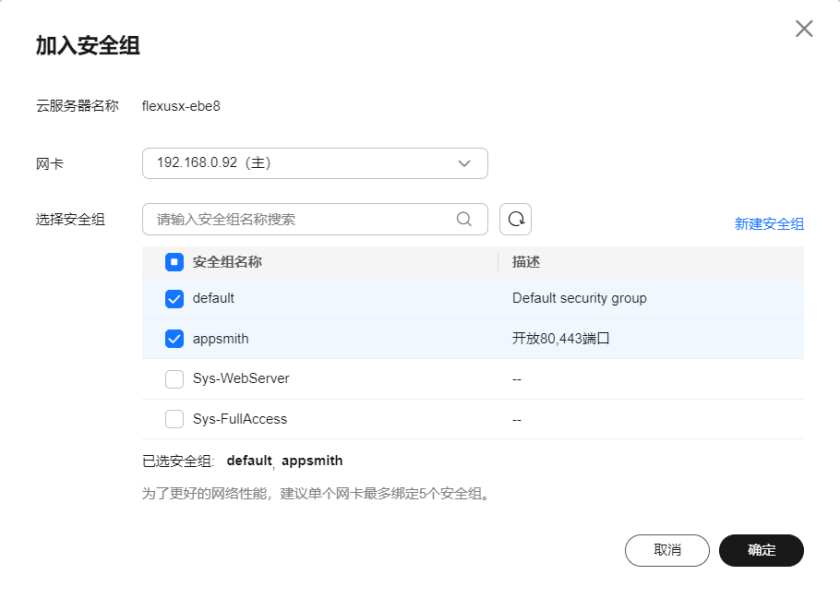 · 然后加入新建的安全组