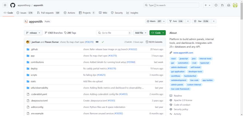 · 输入https://github.com/appsmithorg/appsmith,找到 Appsmith 的 github 仓库