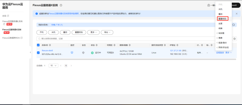 · 获取华为云 Flexus 云服务器 X 实例后第一步就是先去华为云上重置服务器密码
