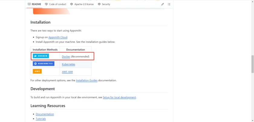 · 然后找到 appsmith 的 docker 部署文档