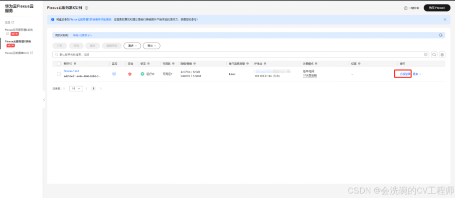 接下来我们打开华为云Flexus X实例的控制台:,点击远程登录: