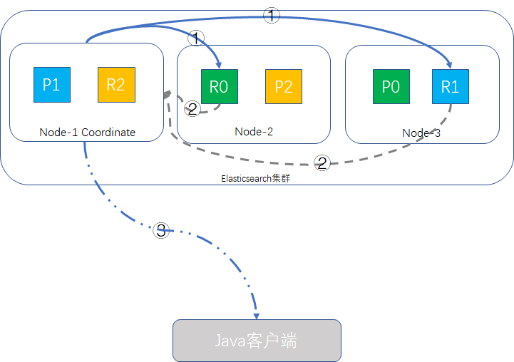 假定我们的ES集群有三个node,number_of_primary_shards为3,replica shard为1,我们执行一个这样的查询请求: