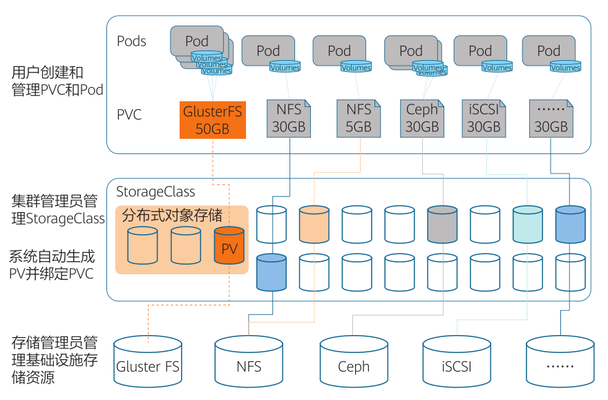 云原生场景中,Kubernetes提供了本地存储、静态卷和动态存储类StorageClass以及插件的方式来使用存储。