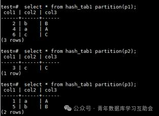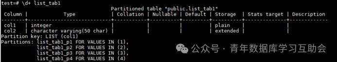 上面是简单的list分区的例子,插入的col1列的值会根据你插入的数值自动匹配与这个数值相等的分区。