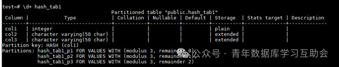 要注意hash分区中分区的定义只需要写分区名即可,不需要定义分区规则