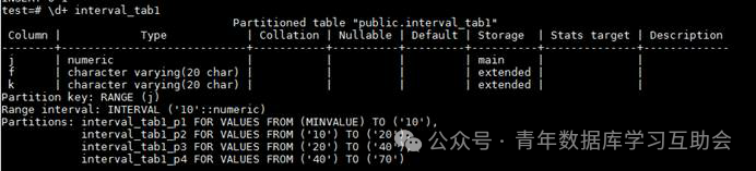 interval分区实际上就是range分区的一种不同的写法,只是这种写法要求分区的数值分布要按照一定的规律增长。