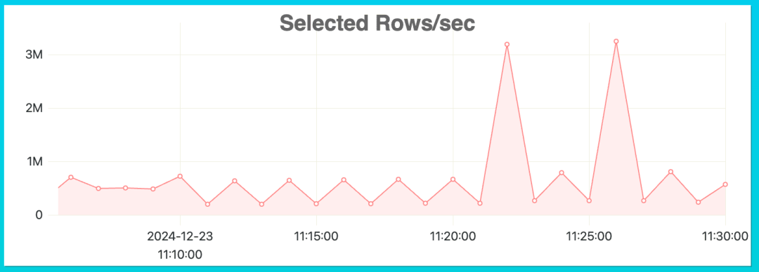 您可以通过监控“每秒选中行数 (Selected Rows/sec)”指标来判断主键设计是否需要优化。选中行数的突然激增,可能意味着查询吞吐量的增加,也可能表明某些查询需要选中大量行来执行操作。