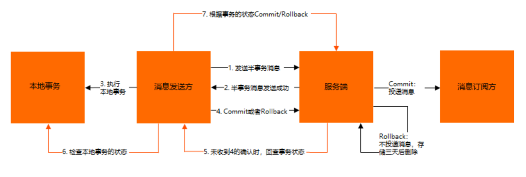 目前主流的MQ框架,都支持分布式事务消息,好多小伙伴可能在初次接触的时候,会很有疑惑,到底是如何保证事务一致性的呢?下图来自阿里云,说的很明白,有点复杂的流程图,静下心来看或者略过不看